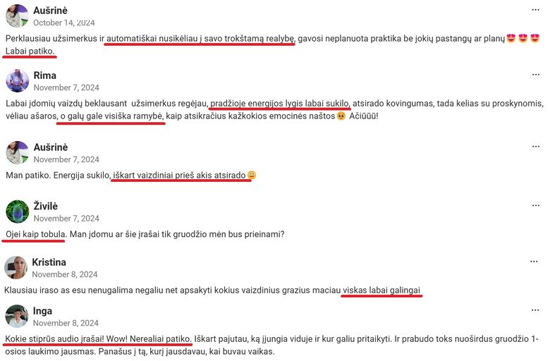 Skirtingo turinio programų: gydomųjų sesijų rinkinių, savarankiškų kursų, mokymų įrašų, audio knygų, el. knygų.